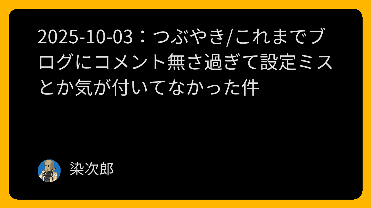 「ブログってコメントが来ないのがデフォだ」という悲しき認識により、コメントを書き込むのにメールアドレスが必要になってたり、コメントいただけたのに通知メールが迷惑メールフォルダに飛んでたりというやらかしにやっと気が付くことができました……